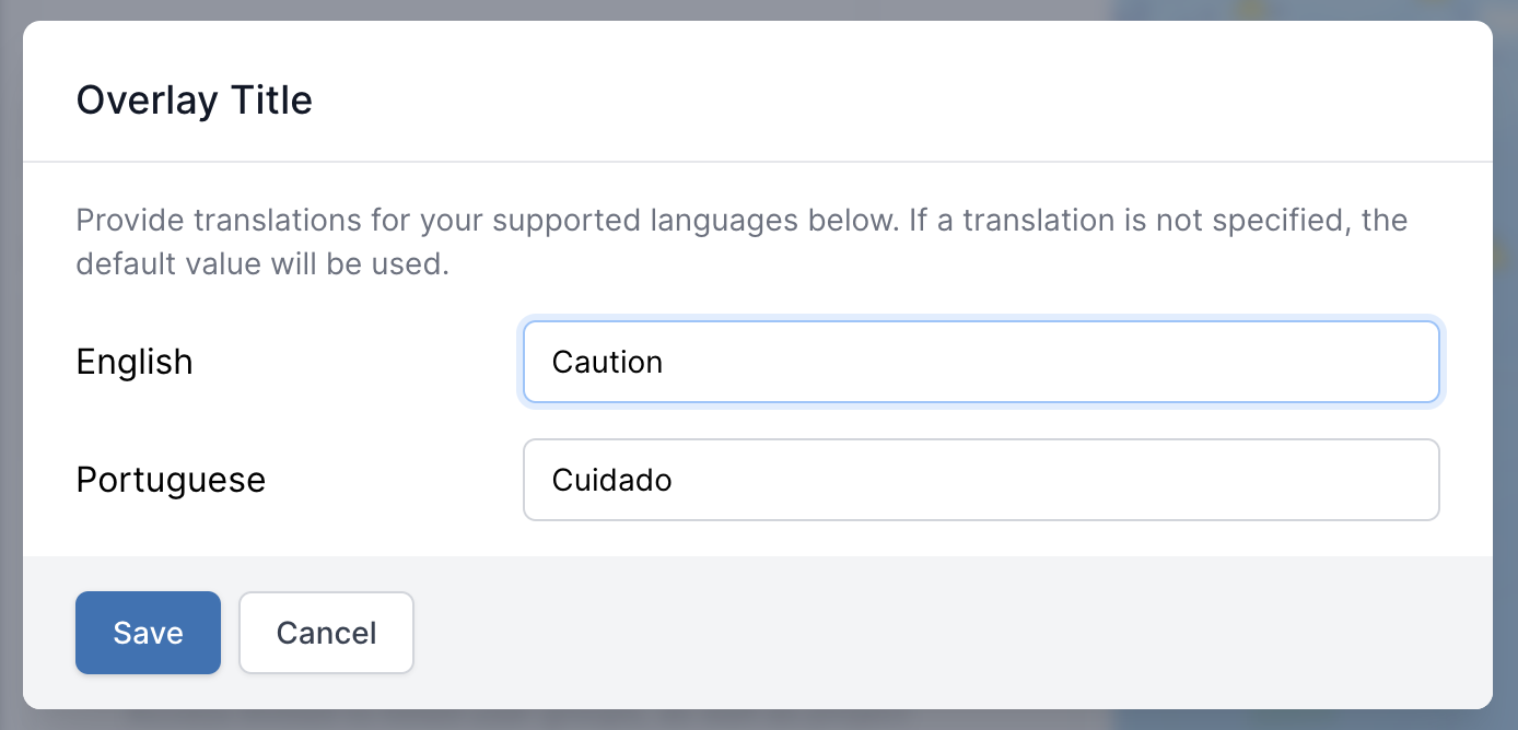<figure><img src="https://3101925571-files.gitbook.io/~/files/v0/b/gitbook-x-prod.appspot.com/o/spaces%2FmrOjheW9v23epAZJDsmJ%2Fuploads%2FtnBzy5ar3eEUPA0sIhys%2FScreenshot%202023-04-28%20at%2012.34.20%20PM.png?alt=media&#x26;token=312c5d50-28b1-425f-a966-737b5509e443" alt=""><figcaption><p>The default name for this layer is "Caution". I've used Google Translate to translate this into Portuguese, "Cuidado". </p></figcaption></figure>